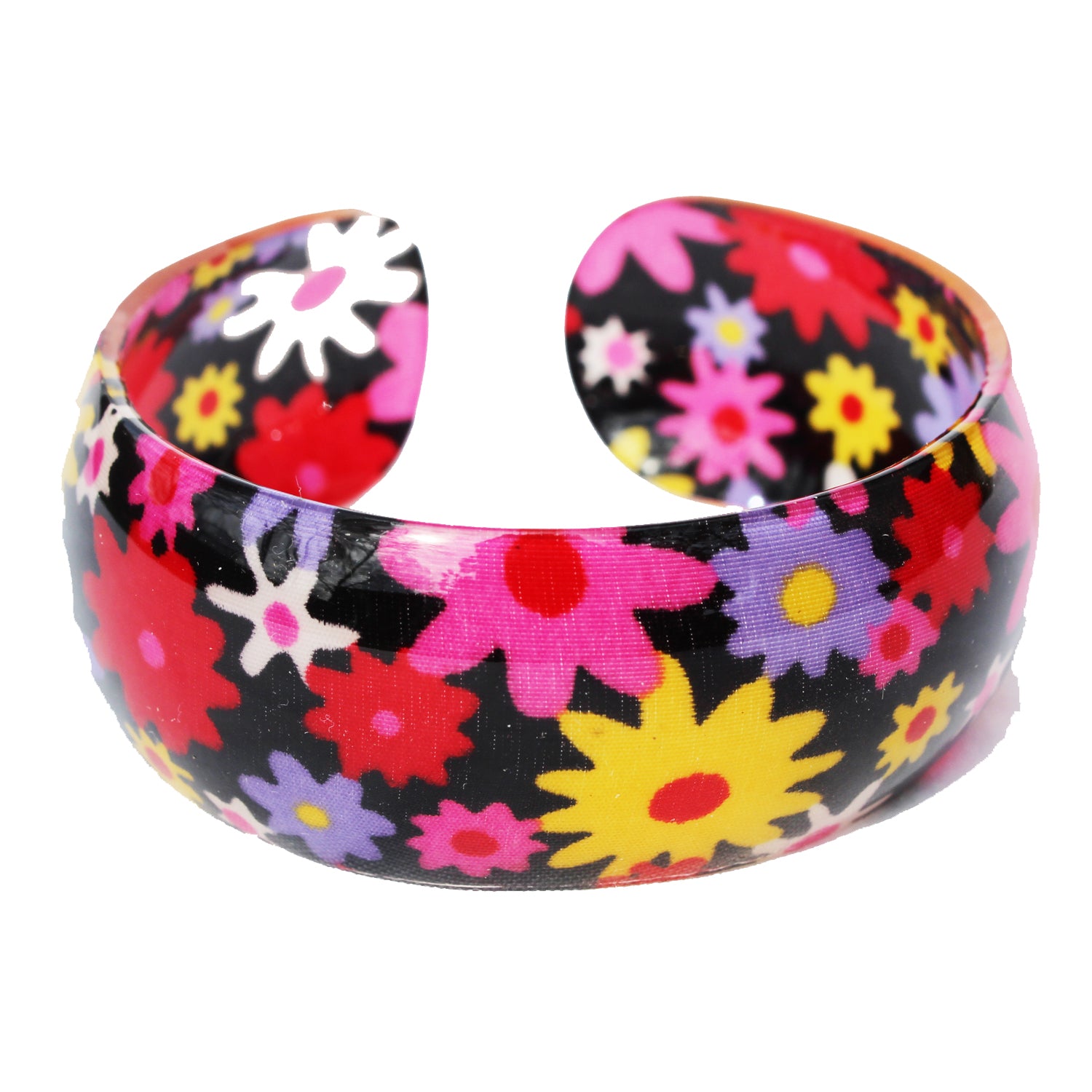 Lovely Floral Resin Cuff in Black, 2 sizes