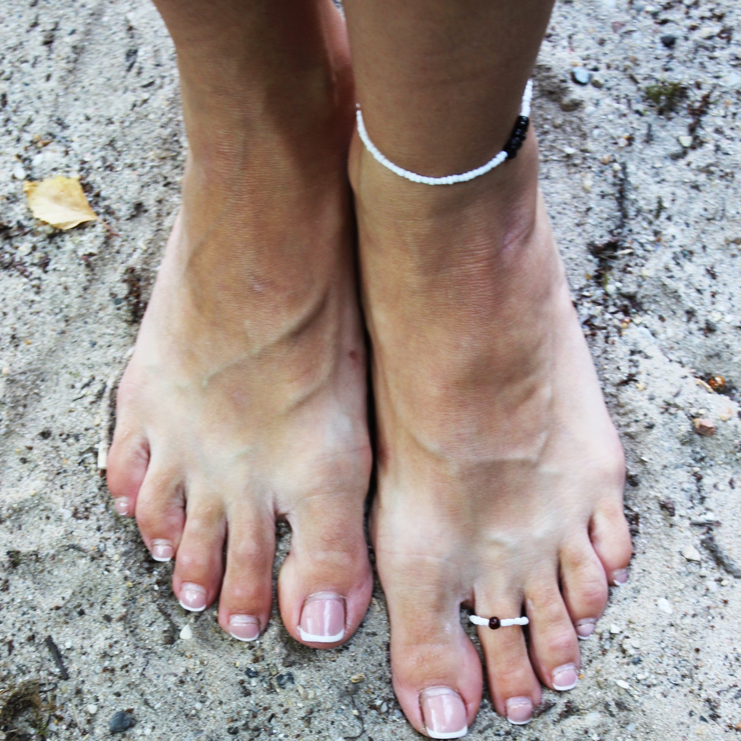 Minimalist Anklet Amber and black spacer beads. One elastic string expands to fit all anklets. Match with bracelet or ring. Amber Jewellery