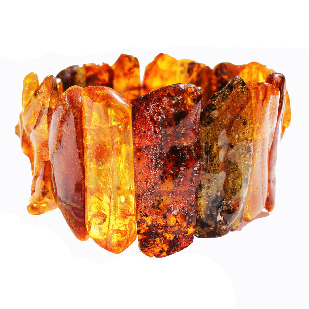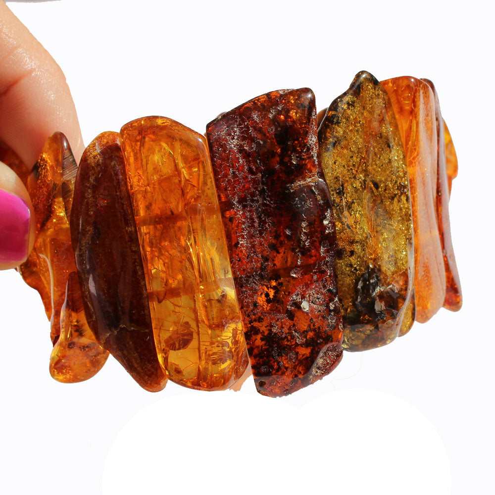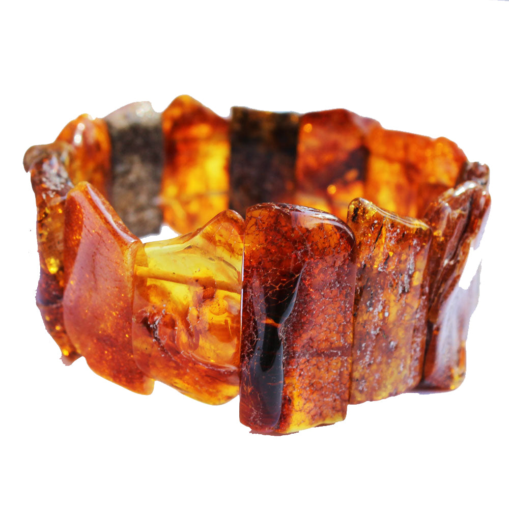 Semi-polished Honey Amber Bracelet. It is made of natural uneven baltic amber pieces.