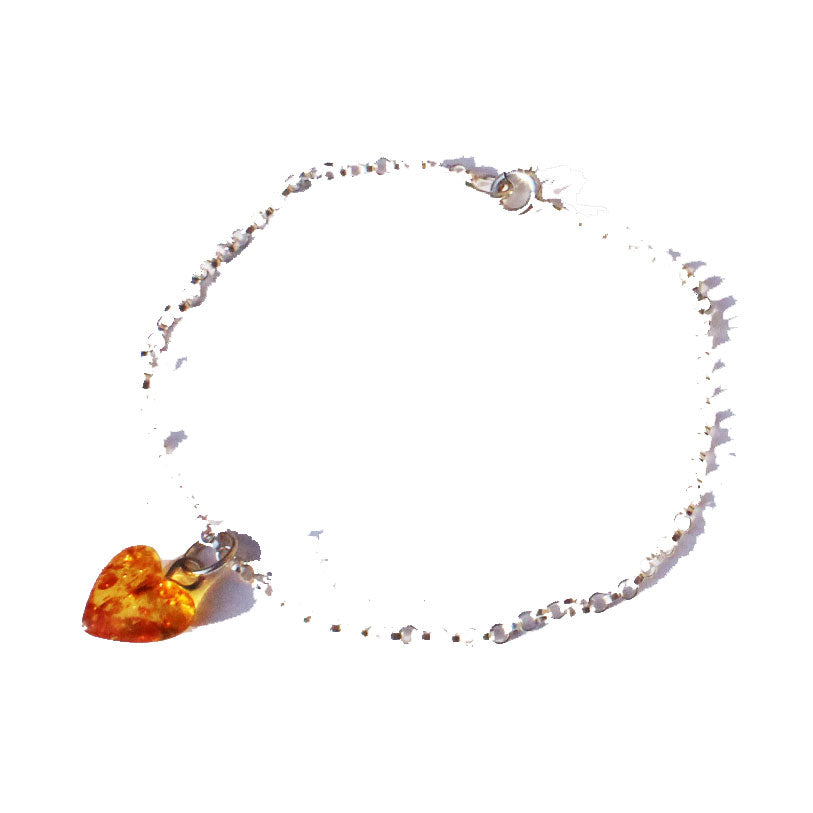 Silver Belcher Chain Bracelet with Amber Heart Charm