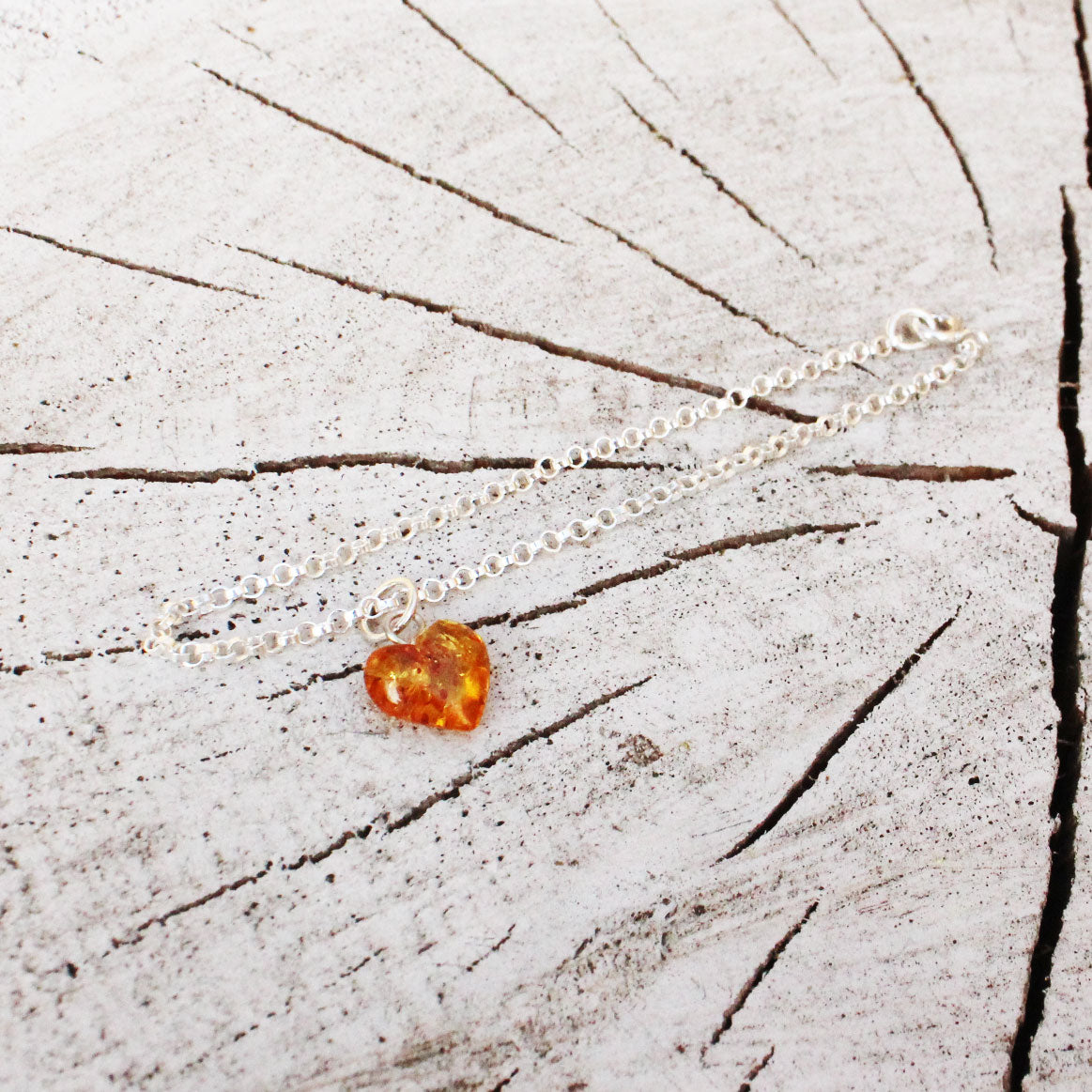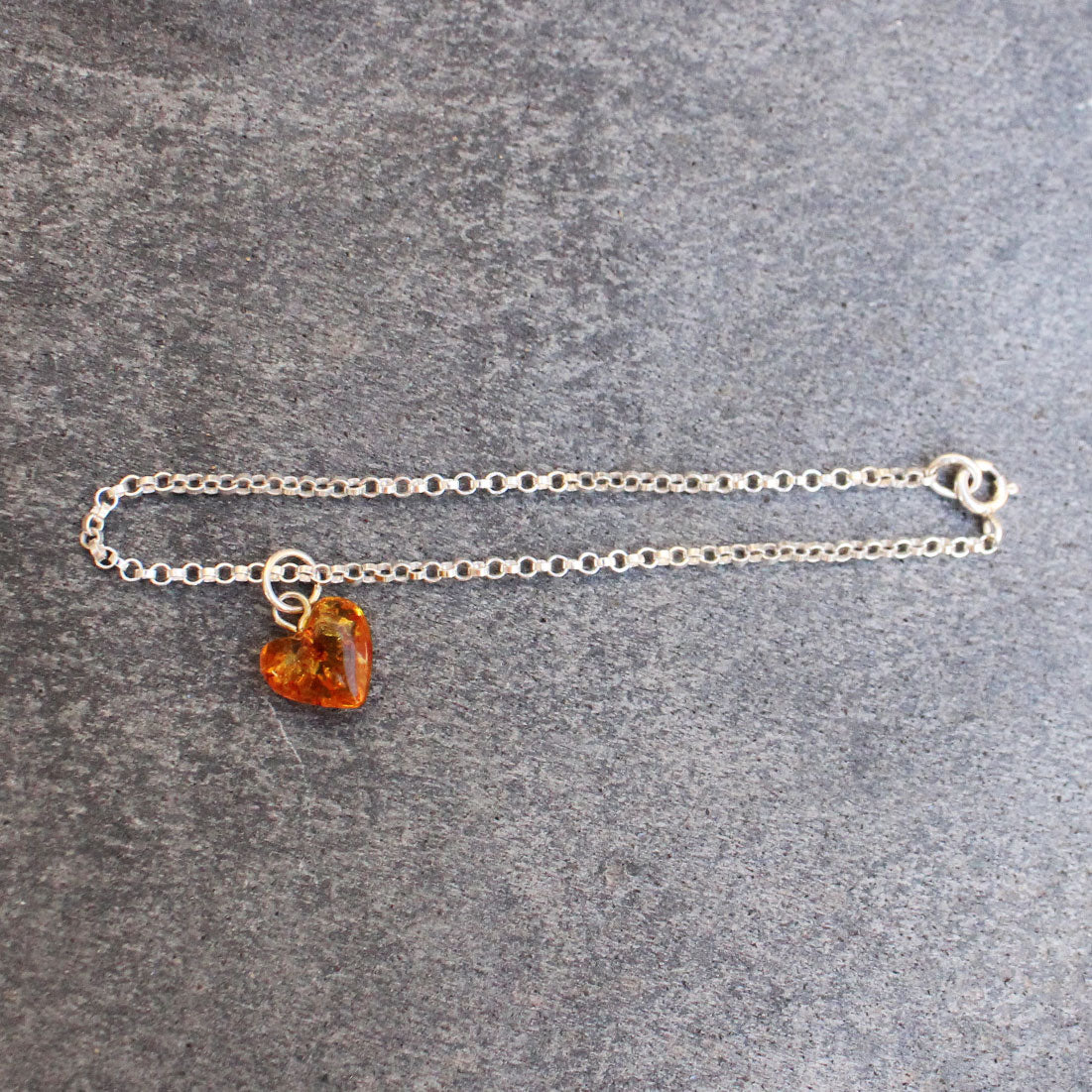 Beautiful Sterling Silver Belcher Chain Bracelet with Amber Heart Charm