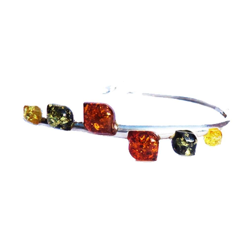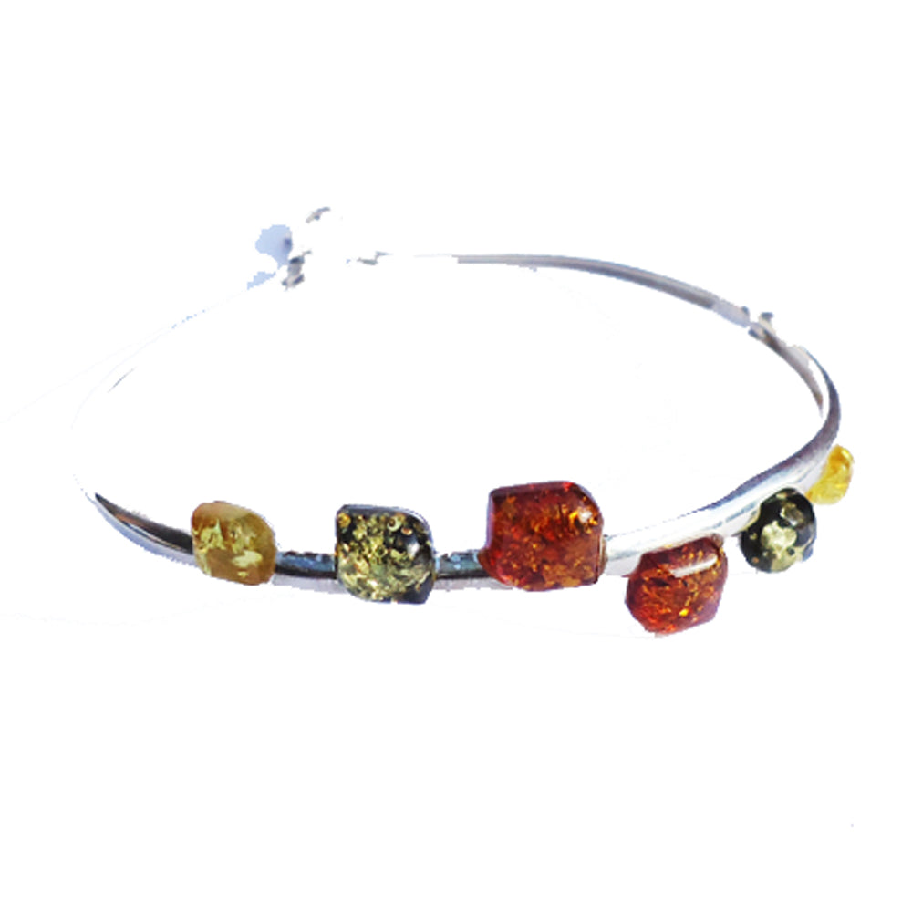 Stylish sterling silver 925 bangle and small square multicolour baltic amber pieces. Amber is smoothly polished. silver and amber jewellery