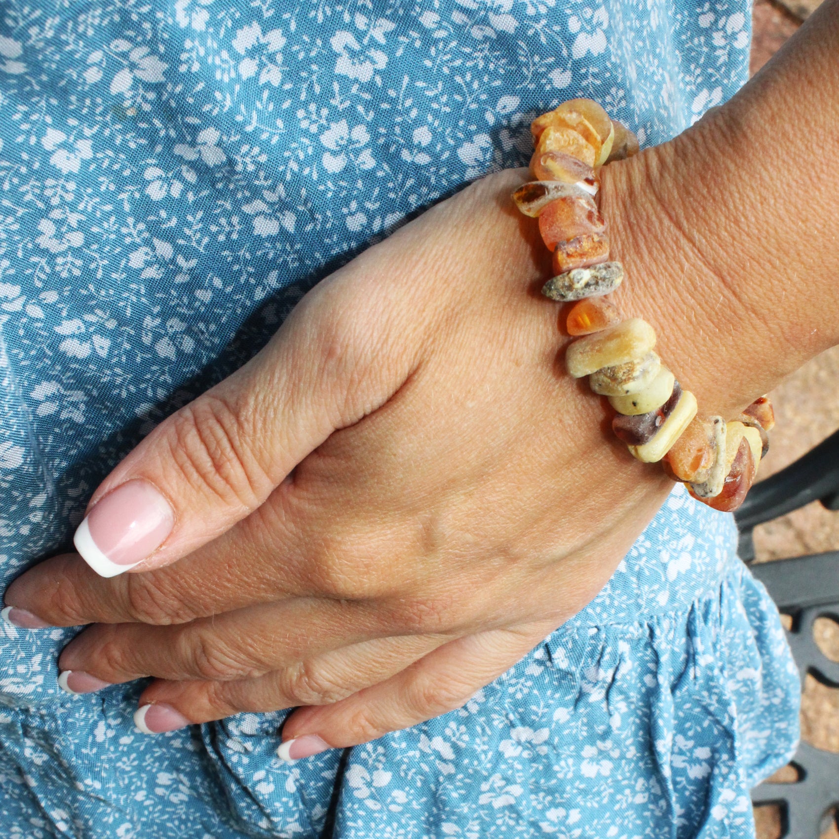 This bold and natural-style bracelet is crafted from large unpolished Baltic amber chips, each piece selected for its organic shape and colour. Around 27 raw amber nuggets are strung on a flexible elastic cord, making this bracelet easy to wear and able to fit all wrists comfortably. A perfect addition to any jewellery box and a thoughtful gift, especially when paired with our elegant gift packaging.
