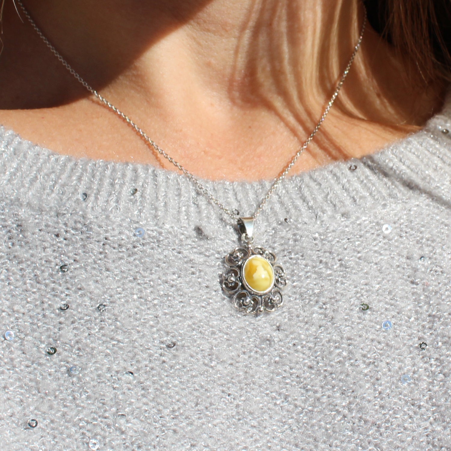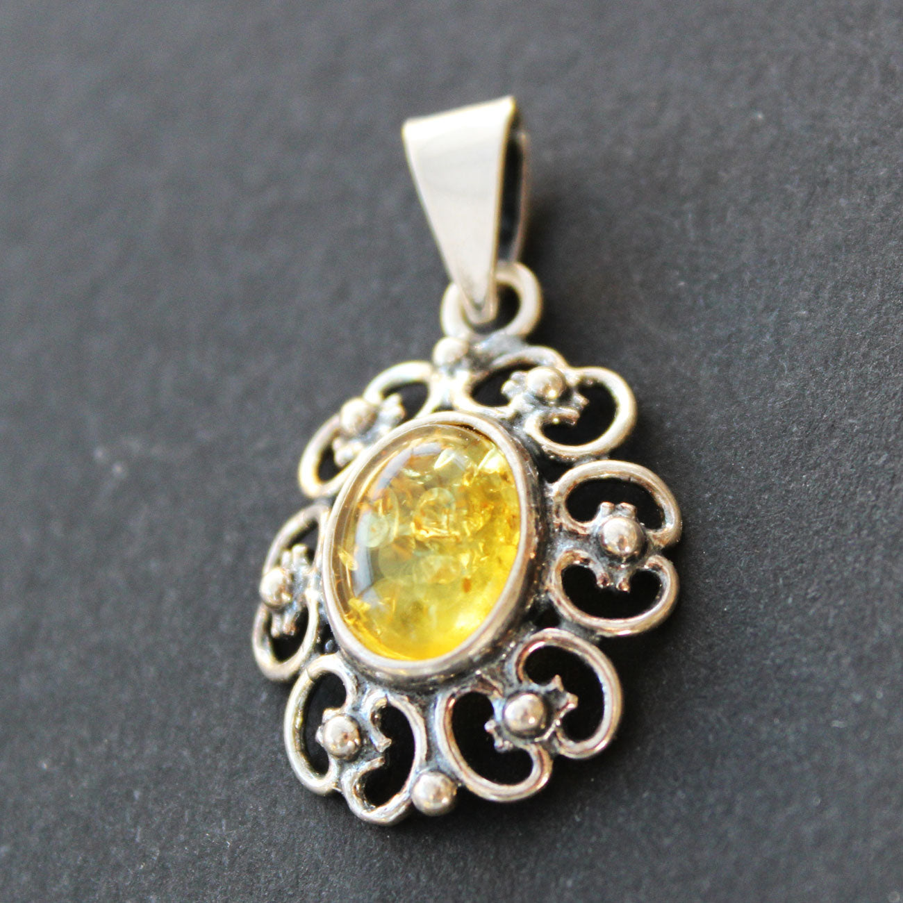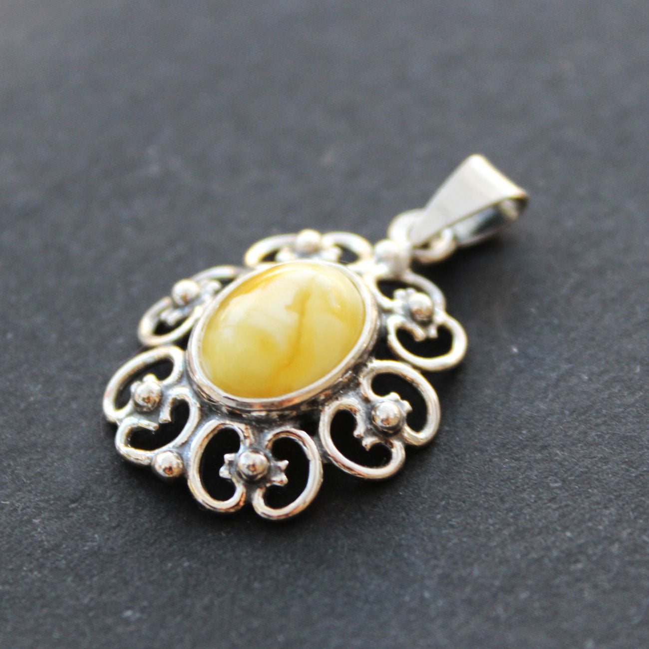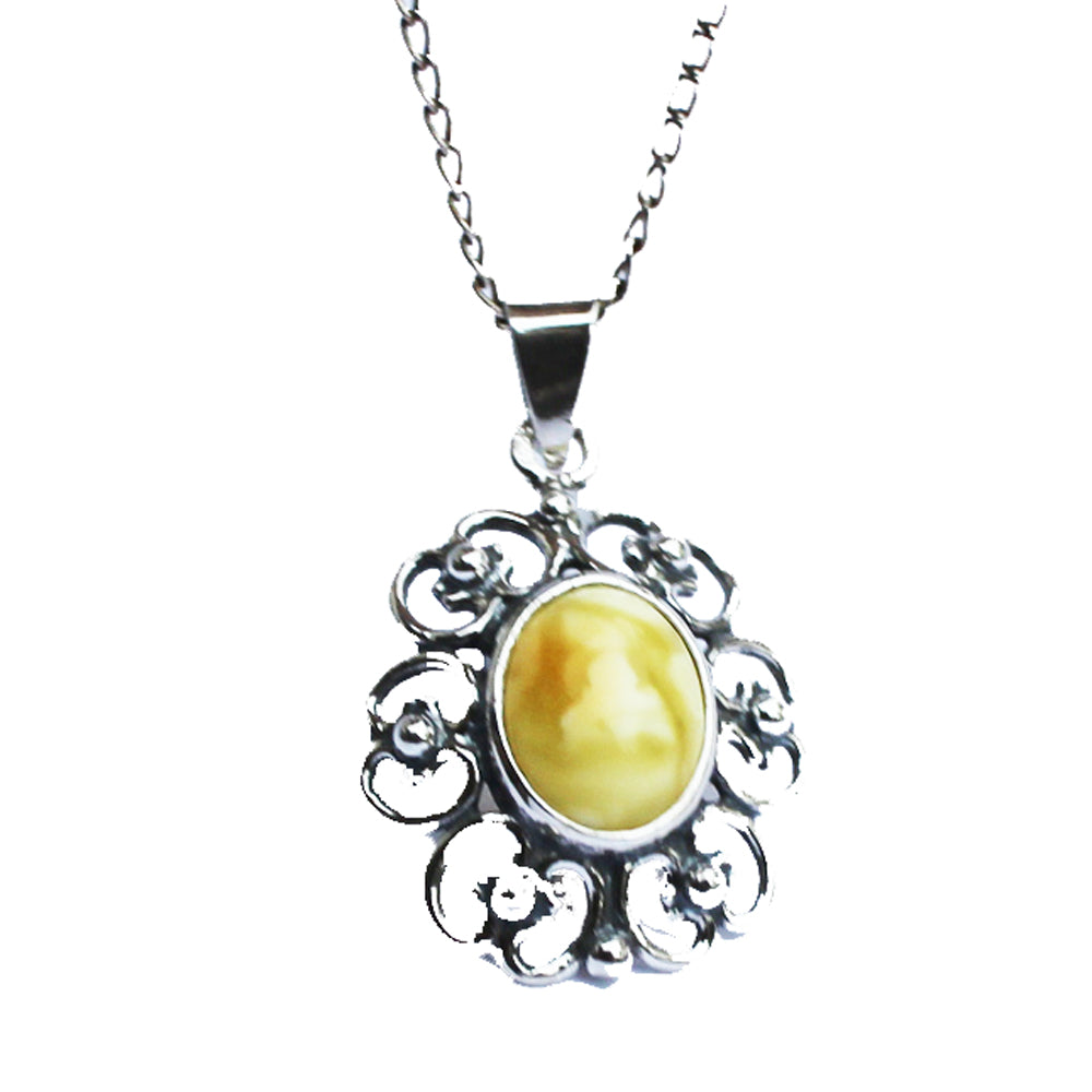 Genuine Baltic Amber and Sterling silver Pendant made of pure 925 sterling silver and natural 100% authentic Baltic Amber.