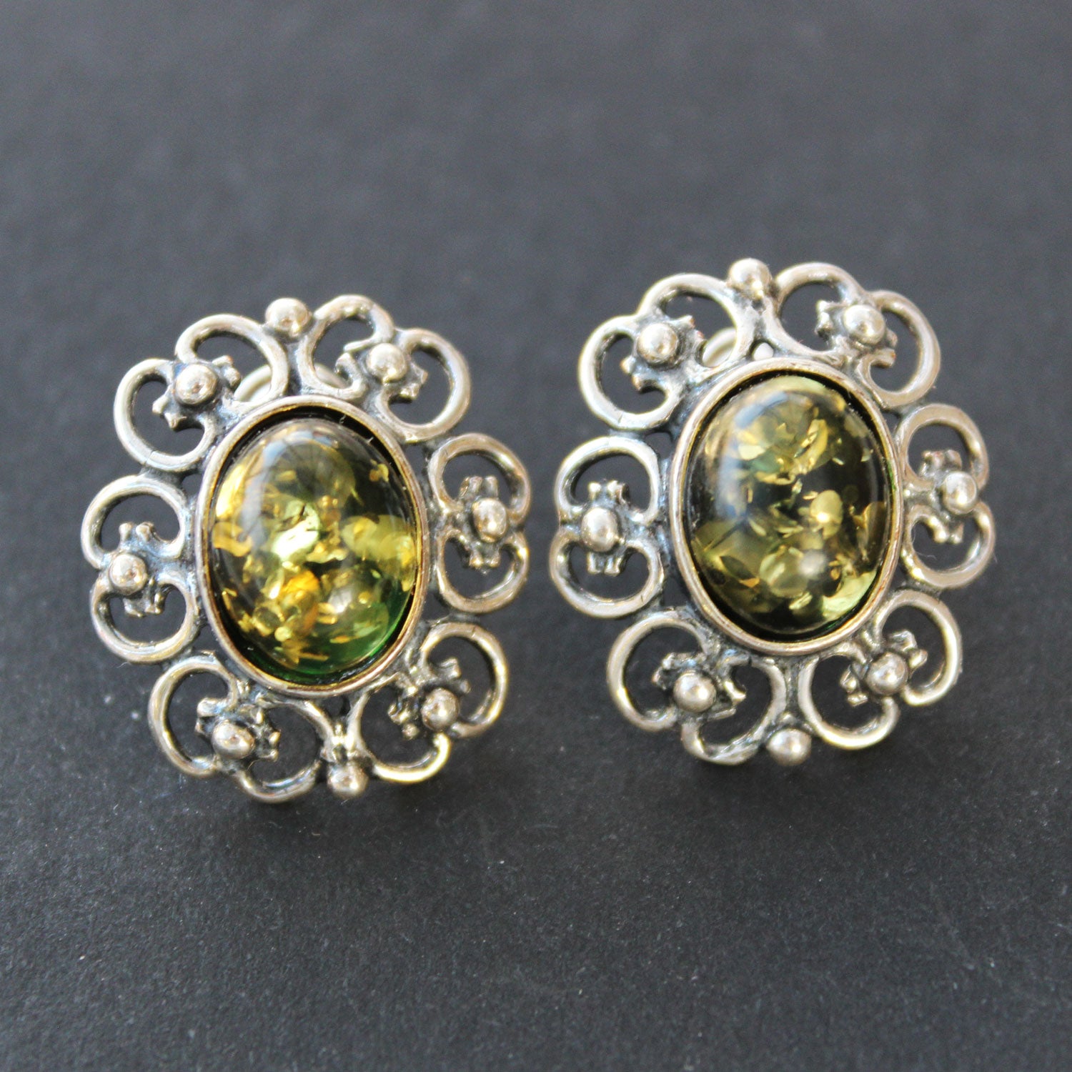 Classic Vintage Oval Amber Sterling Silver Studs, Green or Honey or Butterscotch Genuine Baltic Amber and pure 925 sterling silver square shape. We can offer this amber earrings in 3 different colours: honey or green or butterscotch.