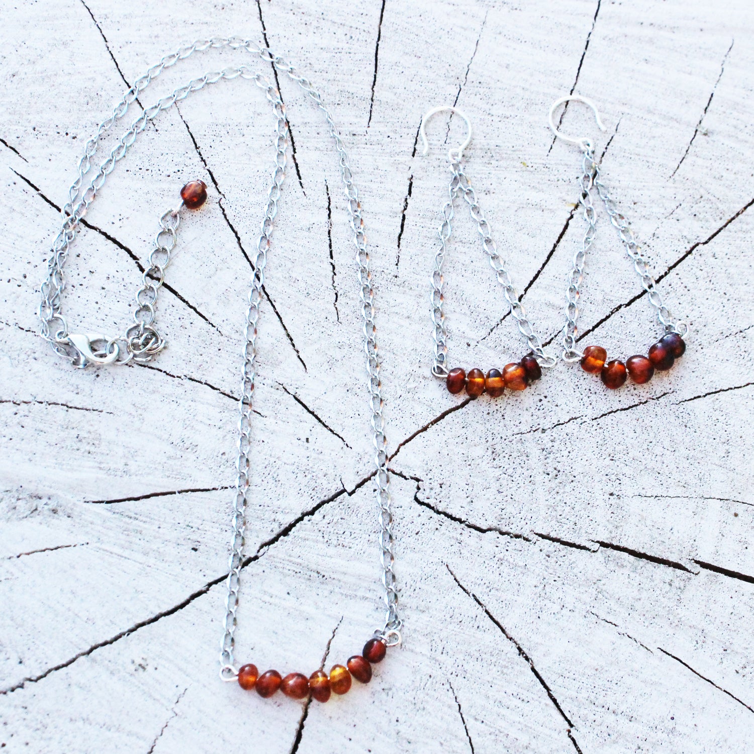 Simply beautiful amber necklace available in honey, butterscotch and cherry. Make a match with amber earrings.