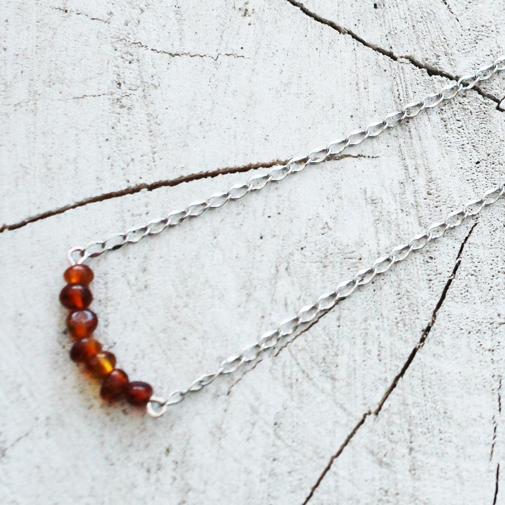 Simply beautiful amber necklace available in honey, butterscotch and cherry. Make a match with amber earrings.