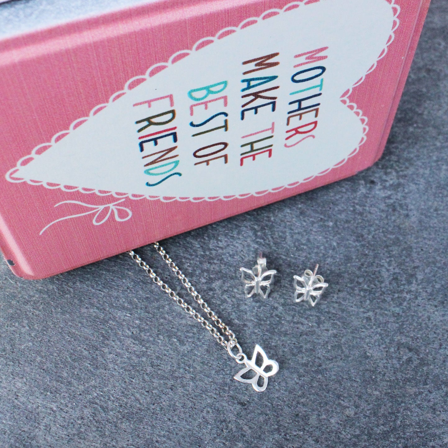 Beautiful Sterling Silver Butterfly Pendant with free silver chain and mothers day box. Perfect Mothers Day Gift. jewellery, Stud Earrings