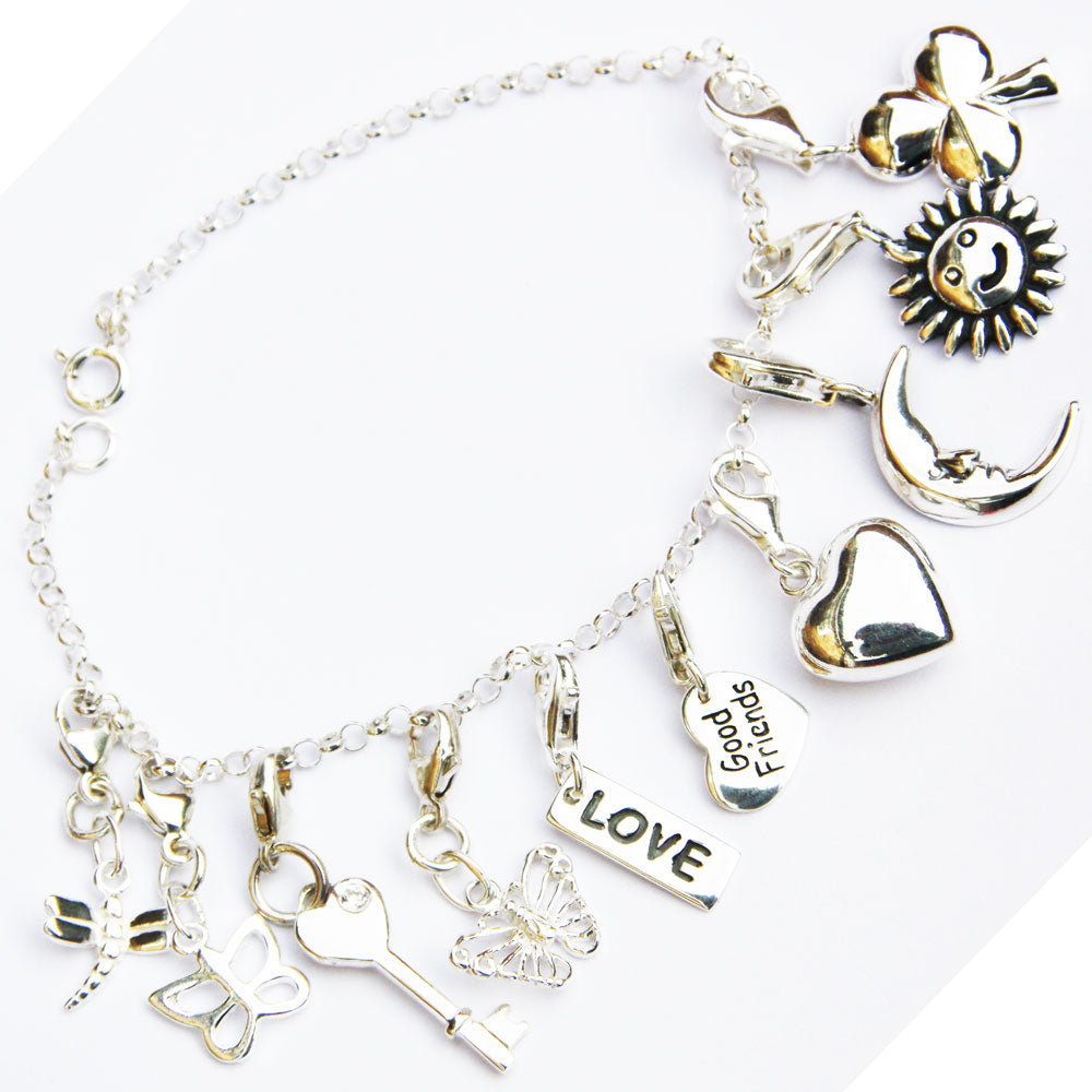Silver Charm-Pendants Dolphin, Key, Heart, Clover, Family